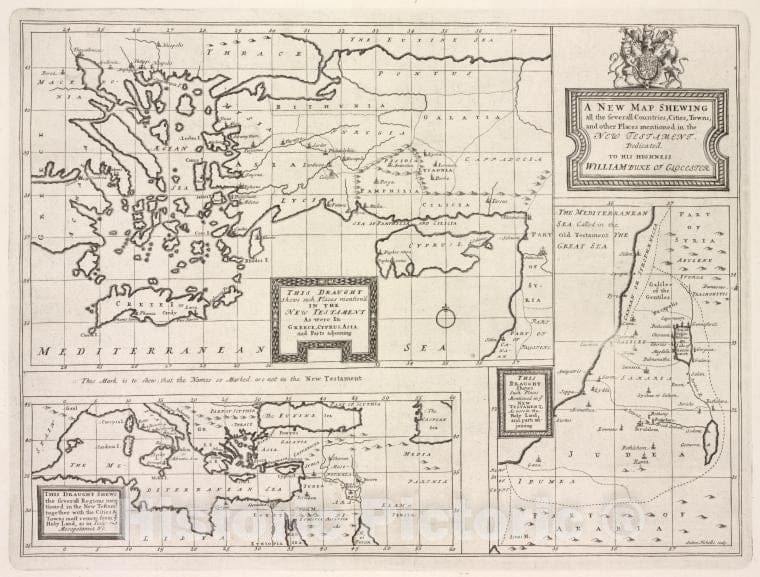 • .Historic 1700 Map - A New Map Shewing All The Severall Countries, Cities, Towns And - England - Vintage Wall Art