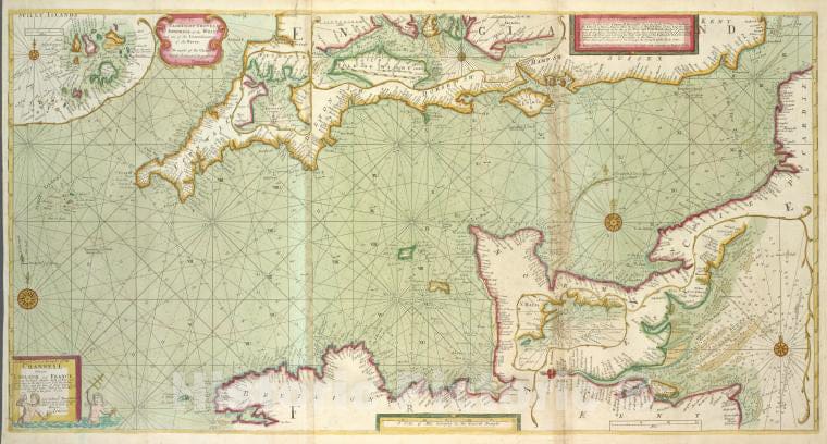 Historic 1702 Map - A New And Correct Draught Of The Channell Between England And Fr - Vintage Wall Art