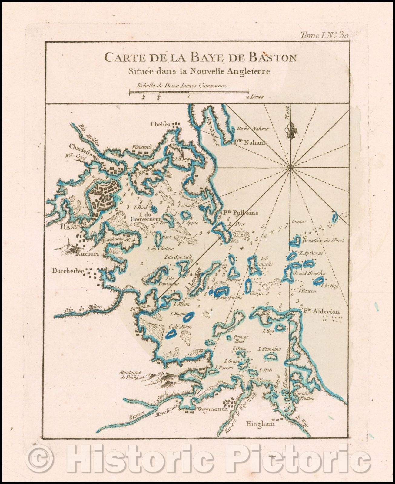 Historic Map - Carte De La Baye De Baston Situee dans la Nouvell Angleterre/Card De La Baye Baston Situated in England Nouvell, 1764, Jacques Nicolas Bellin - Vintage Wall Art