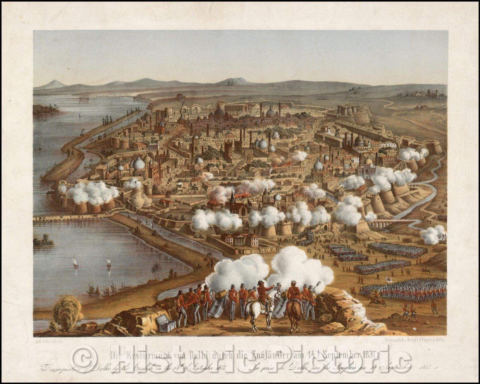 Historic Map - Die Erst?rmung von Delhi durch die Englander am 14l. September 1857, The, The storming of Delhi by the Englander, 1857 - Vintage Wall Art