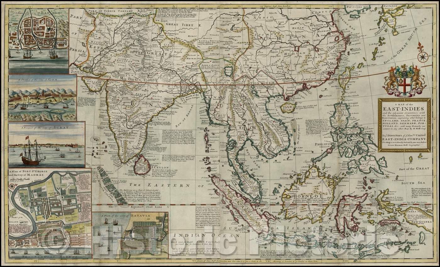 Historic Map - East-Indies and the Adjacent Countries; with the Settlements, Factories and Territories, explaining what Belongs to England, Spain, Franc, 1719 v1