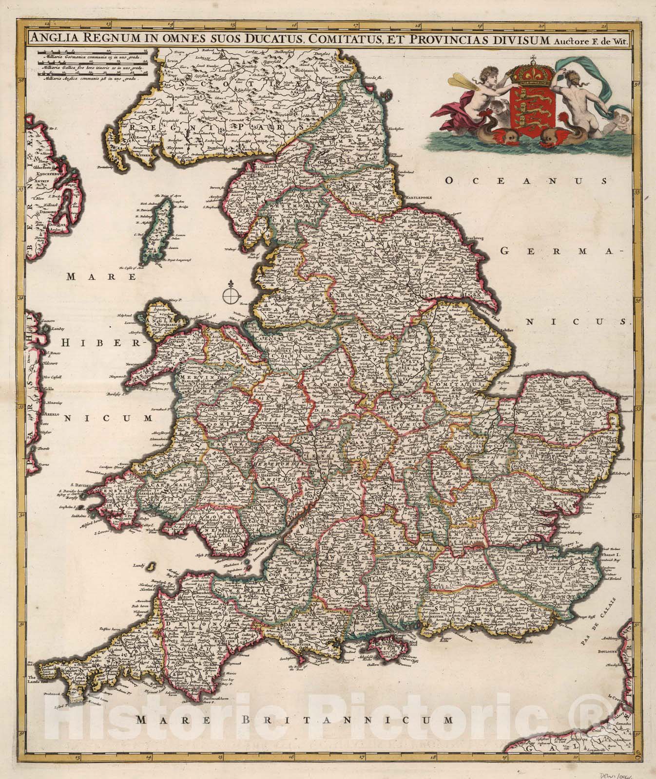Historic Map : England, 1682 Anglia Regnum in Omnes suos Ducatus, Comitatus, et Provincias Divisum. , Vintage Wall Art