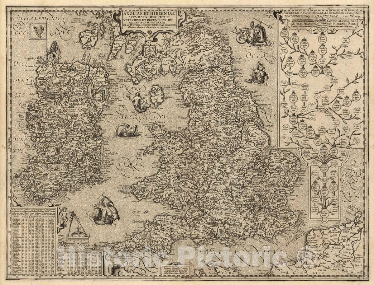 Historic Map : England, Angliae Et Hiberniae Accurata Descriptio, 1605 , Vintage Wall Art