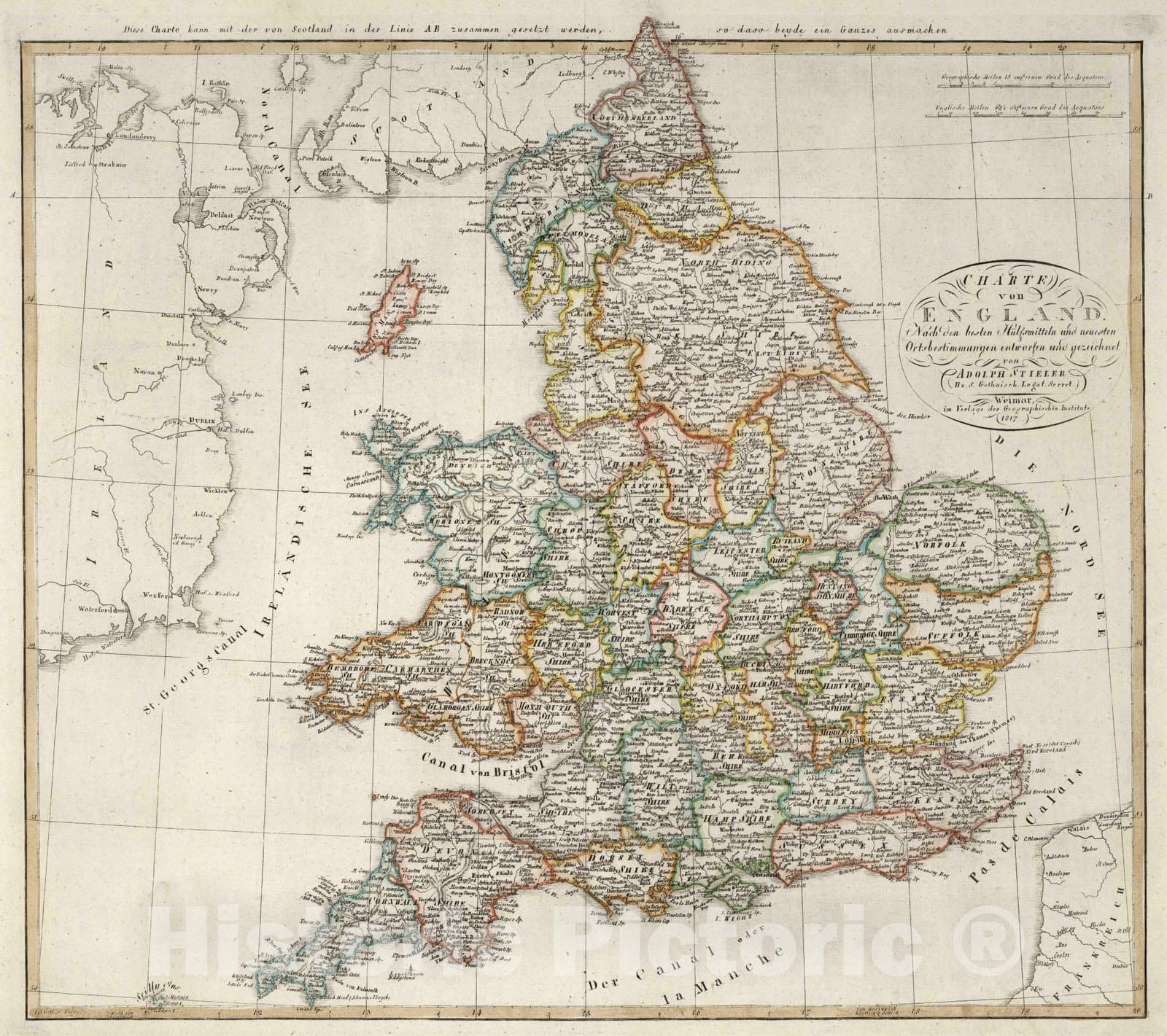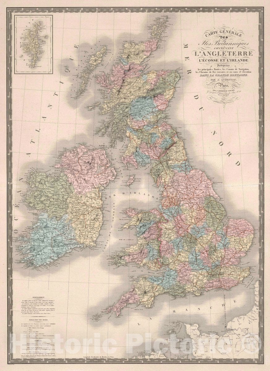 Historic Map : England, Carte Generale des Britanniques Conte nant l'Angleterre l'Ecolese et l'Irelande, 1851 Atlas , Vintage Wall Art