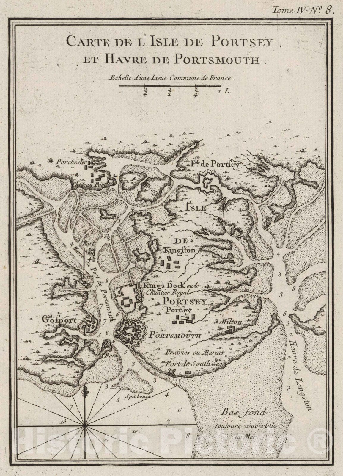 Historic Map : England, , Europe 1764 Carto de I'isle de Portsoy et havro de Portsmouth , Vintage Wall Art