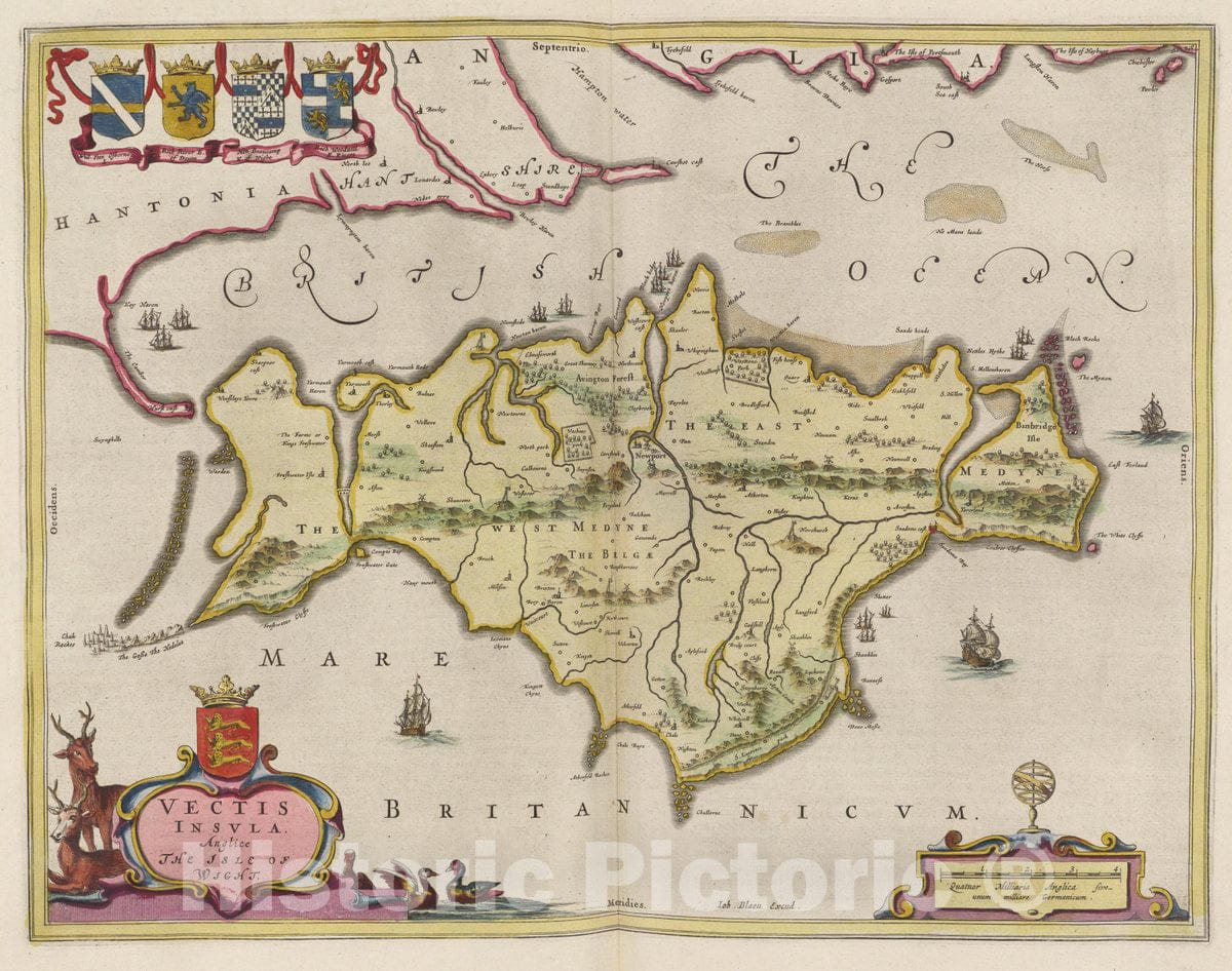 England, Isle of Wight (England) Atlas Maior Sive Cosmographia Blaviana,Vectis Insvla, 1665 Atlas , Vintage Wall Art