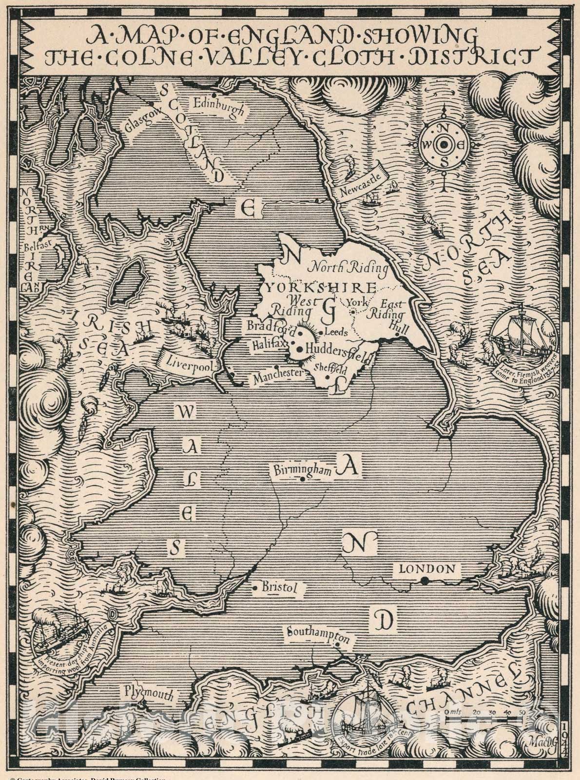 Historic Map : England Showing the Colne Valley Cloth District., 1947, Vintage Wall Art