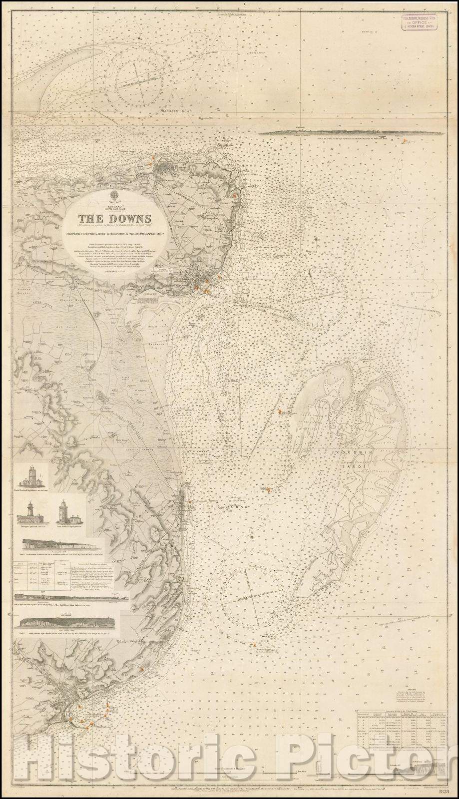 • .Historic Map - England South East Coast - The Downs, 1898, British Admiralty - Vintage Wall Art