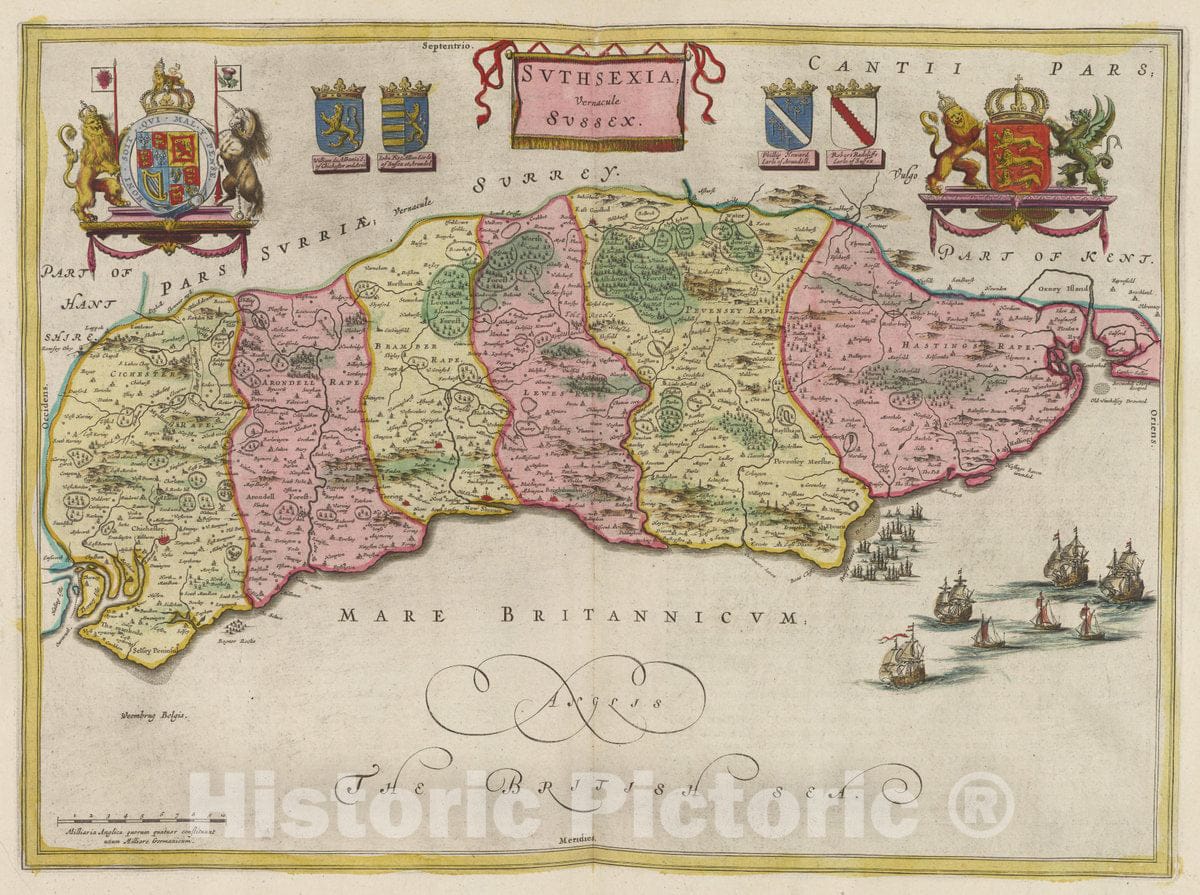 England, Svthsexia, Vernacule Svssex, 1665 Atlas , Vintage Wall Art