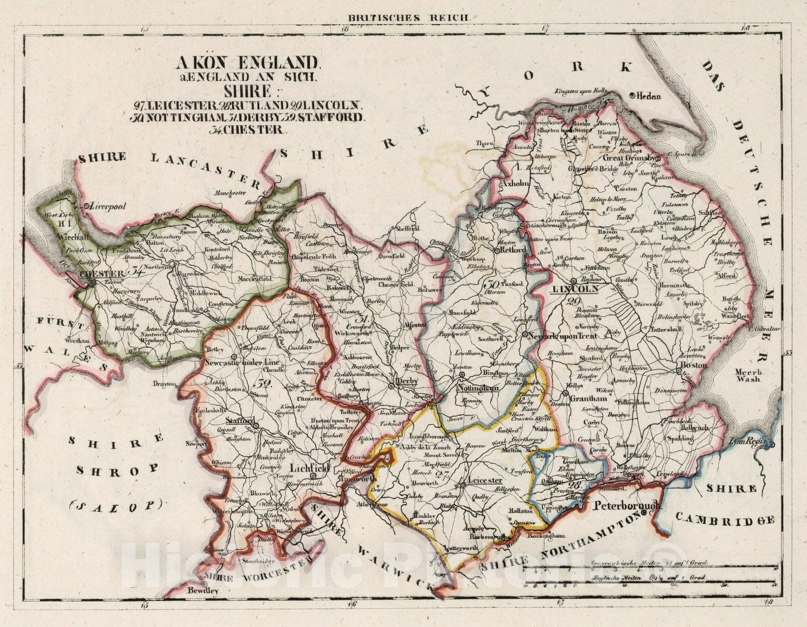 Historic Map : England, V.3:11-15:XV. Britisches Reich. A. Kon: England. a. England ab sich: Shire: 27-31, 39, 34 1830 , Vintage Wall Art