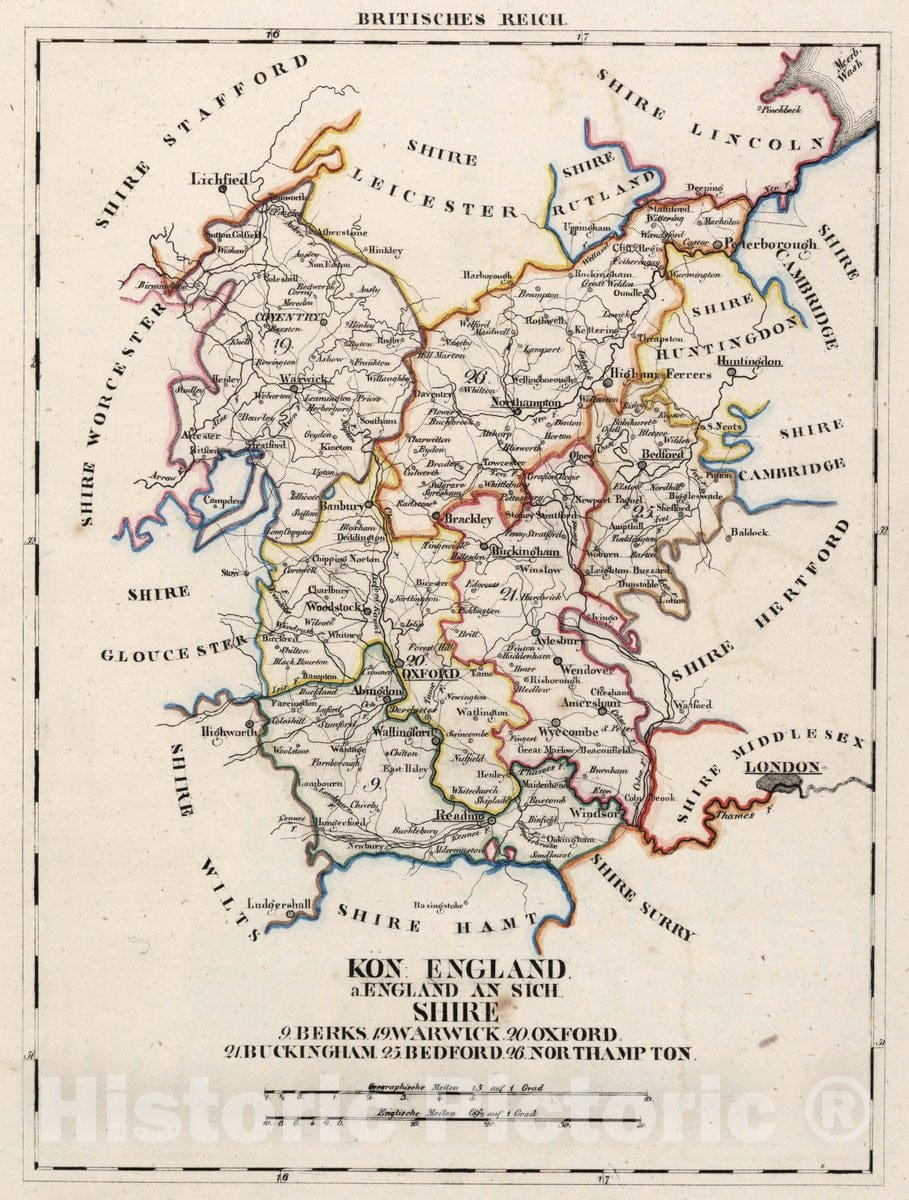 Historic Map : England, V.3:11-15:XV. Britisches Reich. A. Kon: England. a. England ab Sich: Shire: 9, 19-21, 25-26, 1830 Atlas , Vintage Wall Art