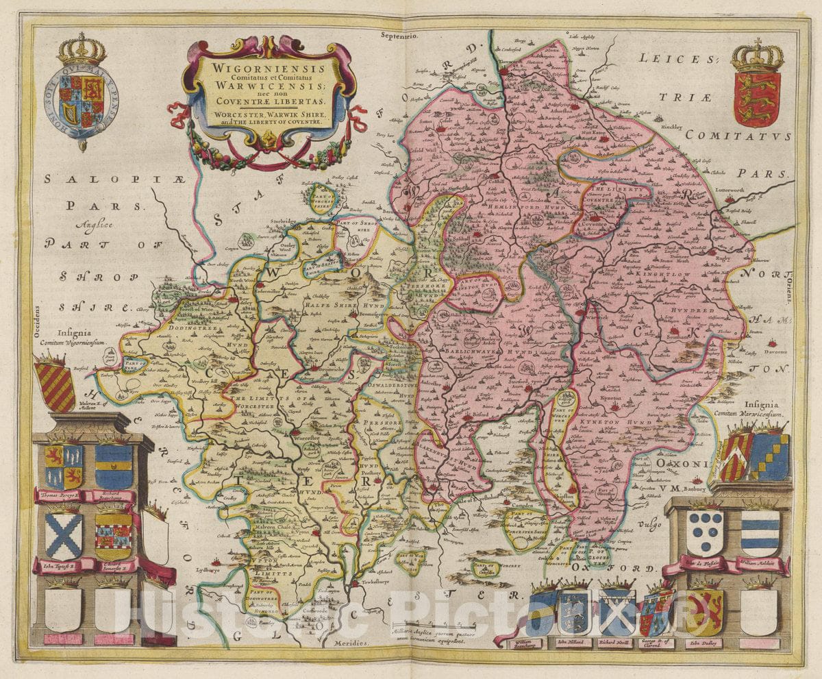 Historic Map : England, Wigorniensis Comitatus et Comitatus Warwicensis, 1665 Atlas , Vintage Wall Art