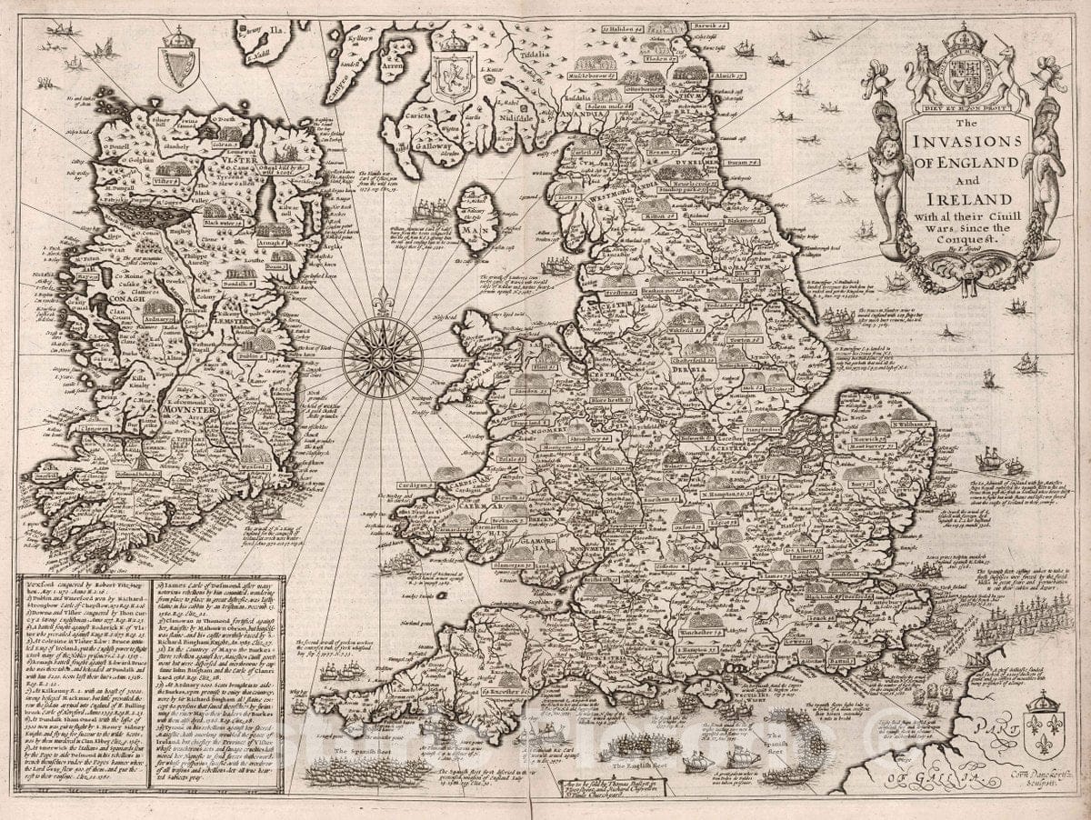 Historic Map : The Invasions of England and Ireland with al Their Civill Wars Since The Conquest, 1676 Atlas - Vintage Wall Art