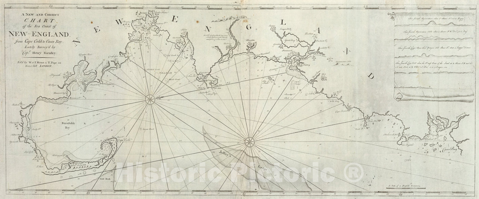 Historic Map : New and Correct Chart of the Sea Coast of New-England from Cape Codd to Casco Bay., 1794, Vintage Wall Art