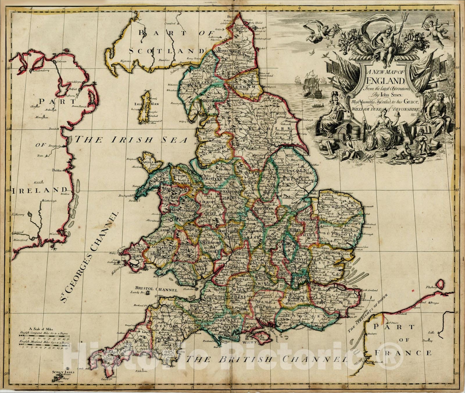 A New Map of England; From the latest Observations, By Johna Senex, 1721, John Senex