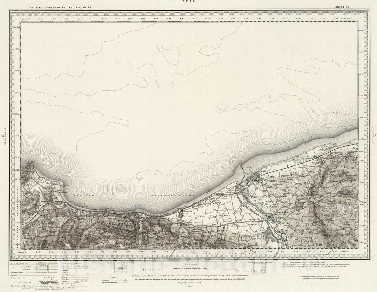 Historic Map : Ordnance Survey of England. (Revised New Series). 95 RHYL (Hills), 1898 Atlas - Vintage Wall Art