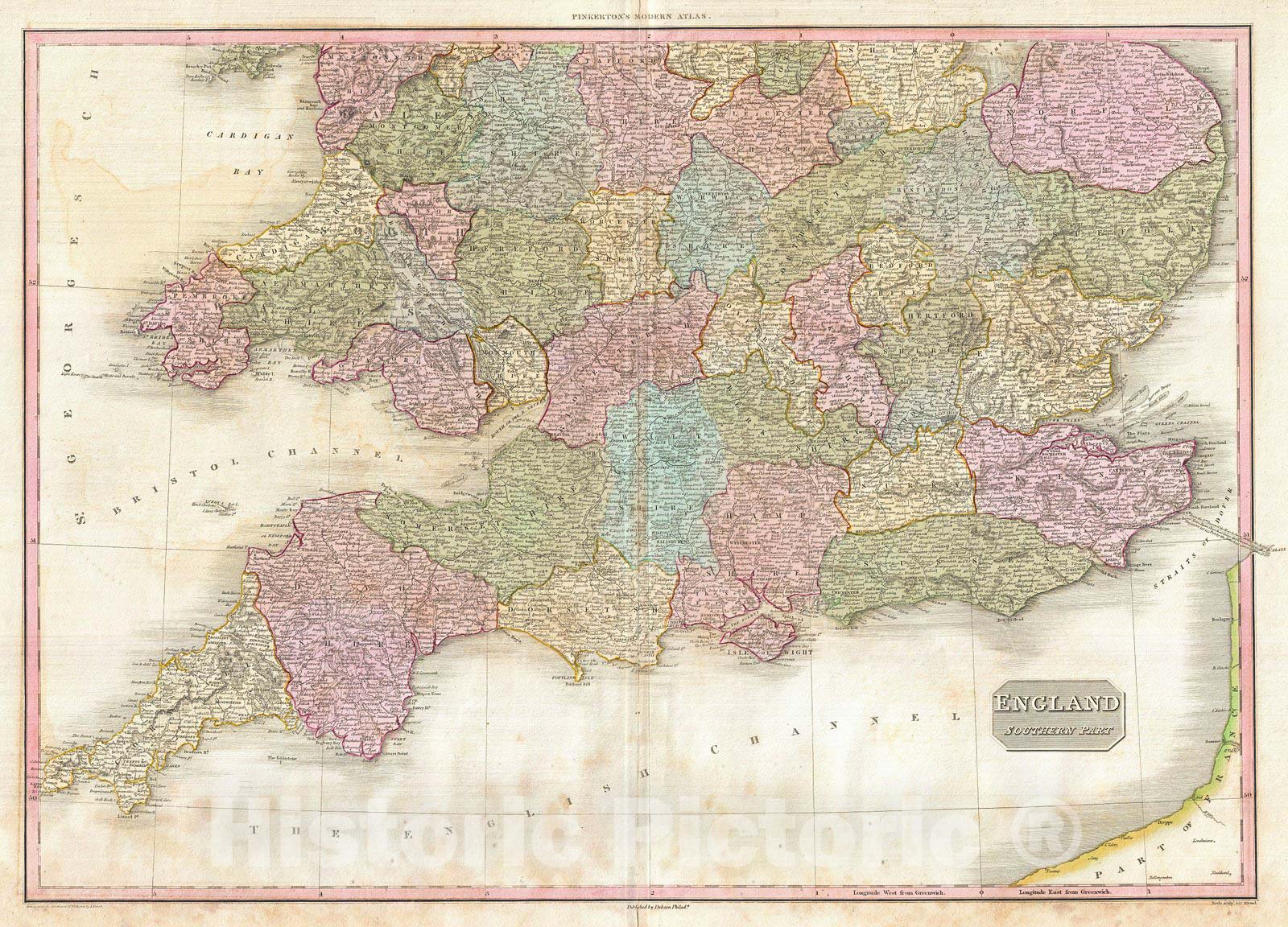 Historic Map : Pinkerton Map of Southern England (Includes London), 1818, Vintage Wall Art