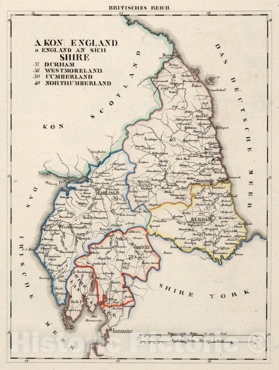 Historic Wall Map : England, V.3:11-15:XV. Britisches Reich. A. Kon: England. a. England ab Sich: Shire: 37-40, 1830 Atlas , Vintage Wall Art