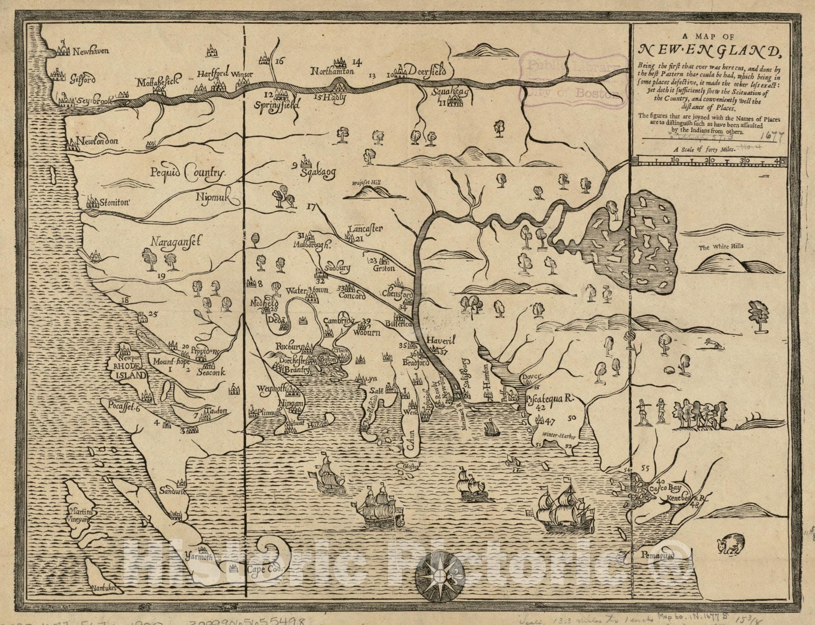 Historical Map, 1900 A map of New-England : Being The First That Ever was here Cut, and Done by The Best Pattern That Could be had, which Being in Some Places, Vintage Wall Art