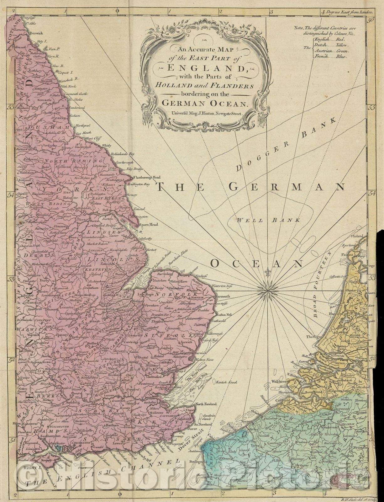 Historic Map : An Accurate Map of the East Part of England with the Parts of Holland and Flanders bordering on the German Ocean., 1760 , Vintage Wall Art