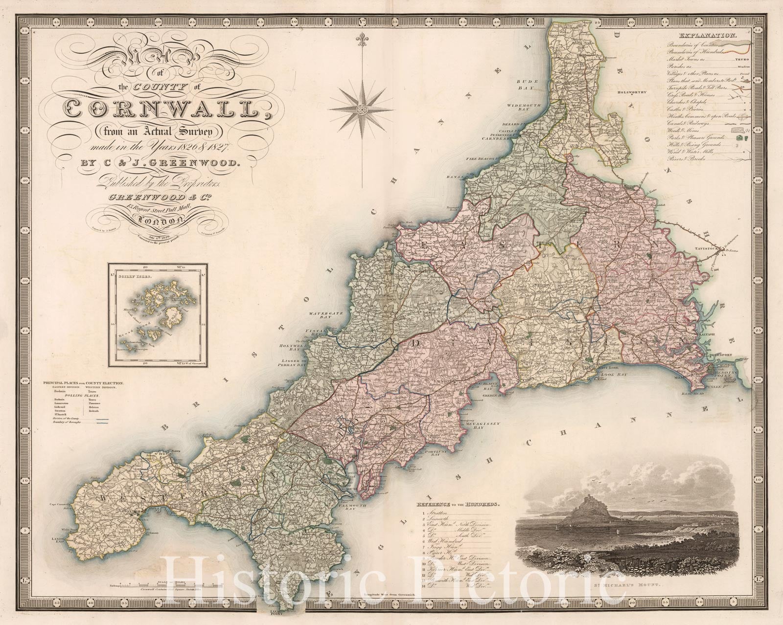 Map : Cornwall, England 1829, Map of the county of Cornwall : from an actual survey made in the years 1826 & 1827 , Antique Vintage Reproduction