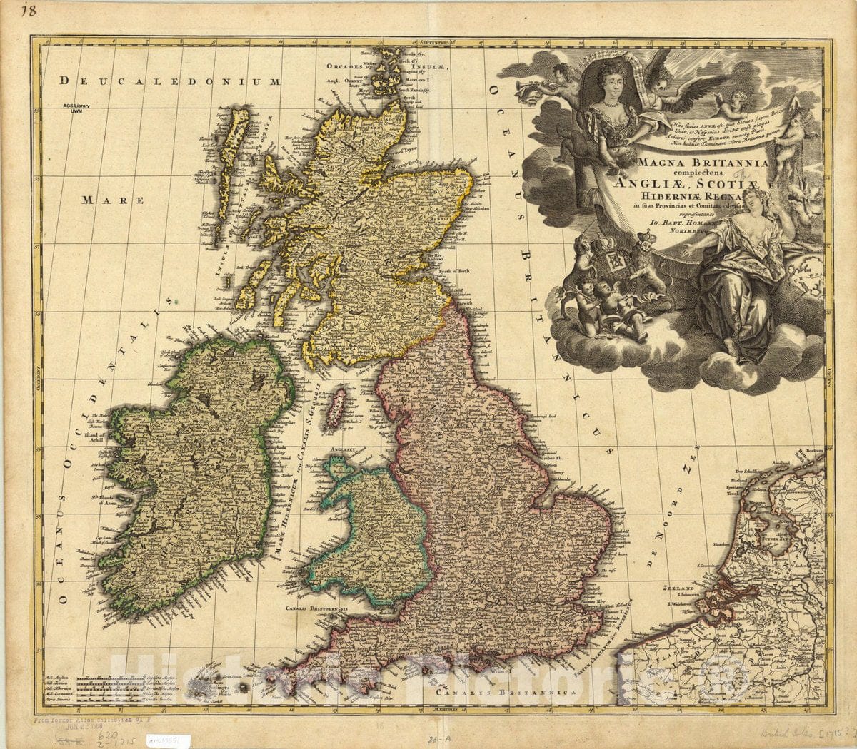 Magna Britannia complectens Anglia, Scotià ¦ et Hibernià ¦ regan in suas provincias et comitatus divisa reprà ¦sentate / Jo. Bapt. Homann, Norimberg, cum privilegio S.C.M.