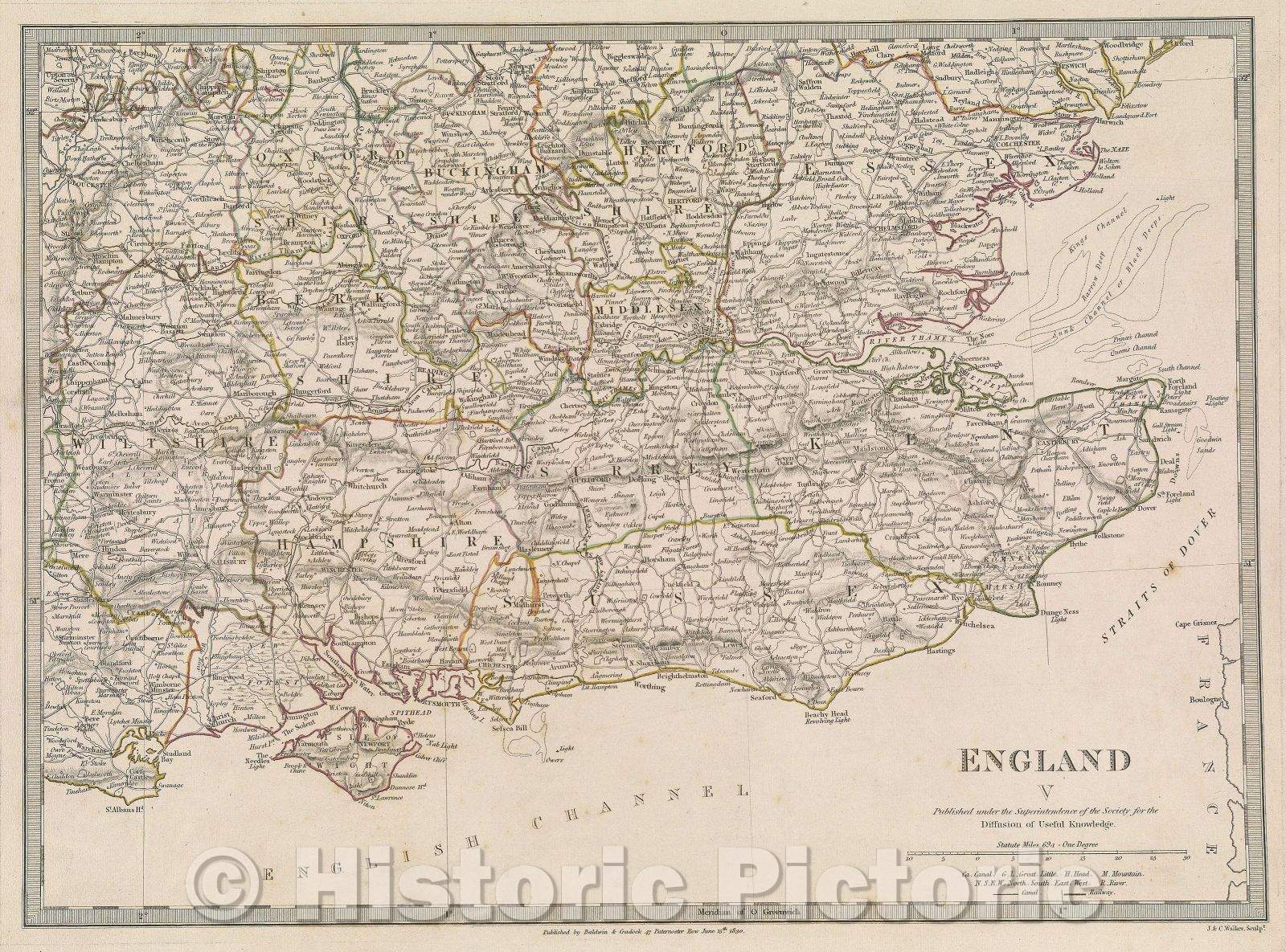Historic Map : England V, 1830 , Vintage Wall Art