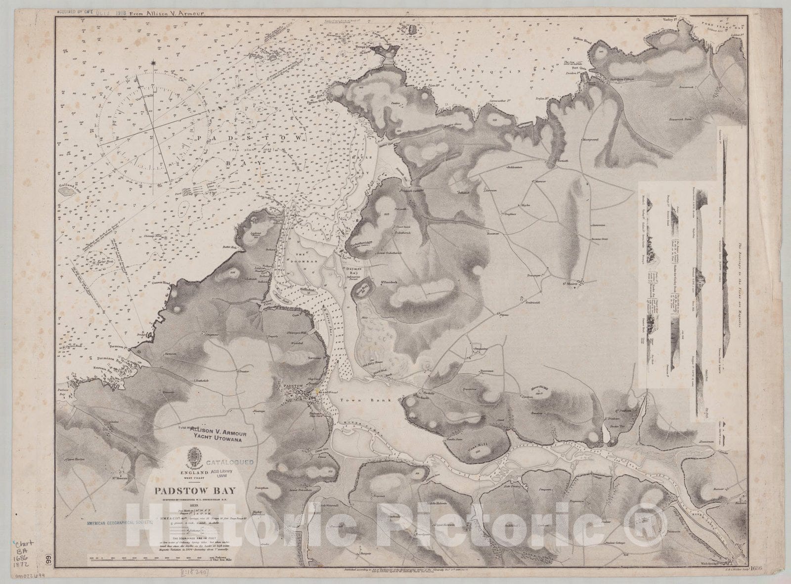 Map : England, west coast 1872, England west coast, Padstow Bay , Antique Vintage Reproduction