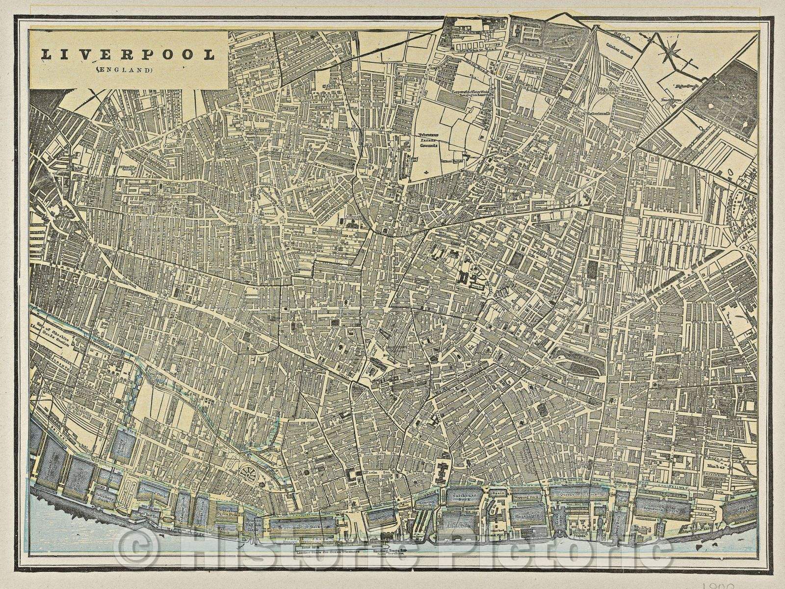 Historic Map : Liverpool (England), 1900 , Vintage Wall Art
