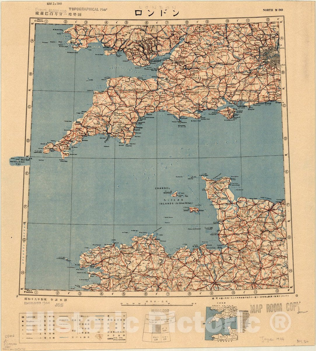 • .Map : London, England 1944, Europe 1:1,000,000 London North M 30 , Antique Vintage Reproduction