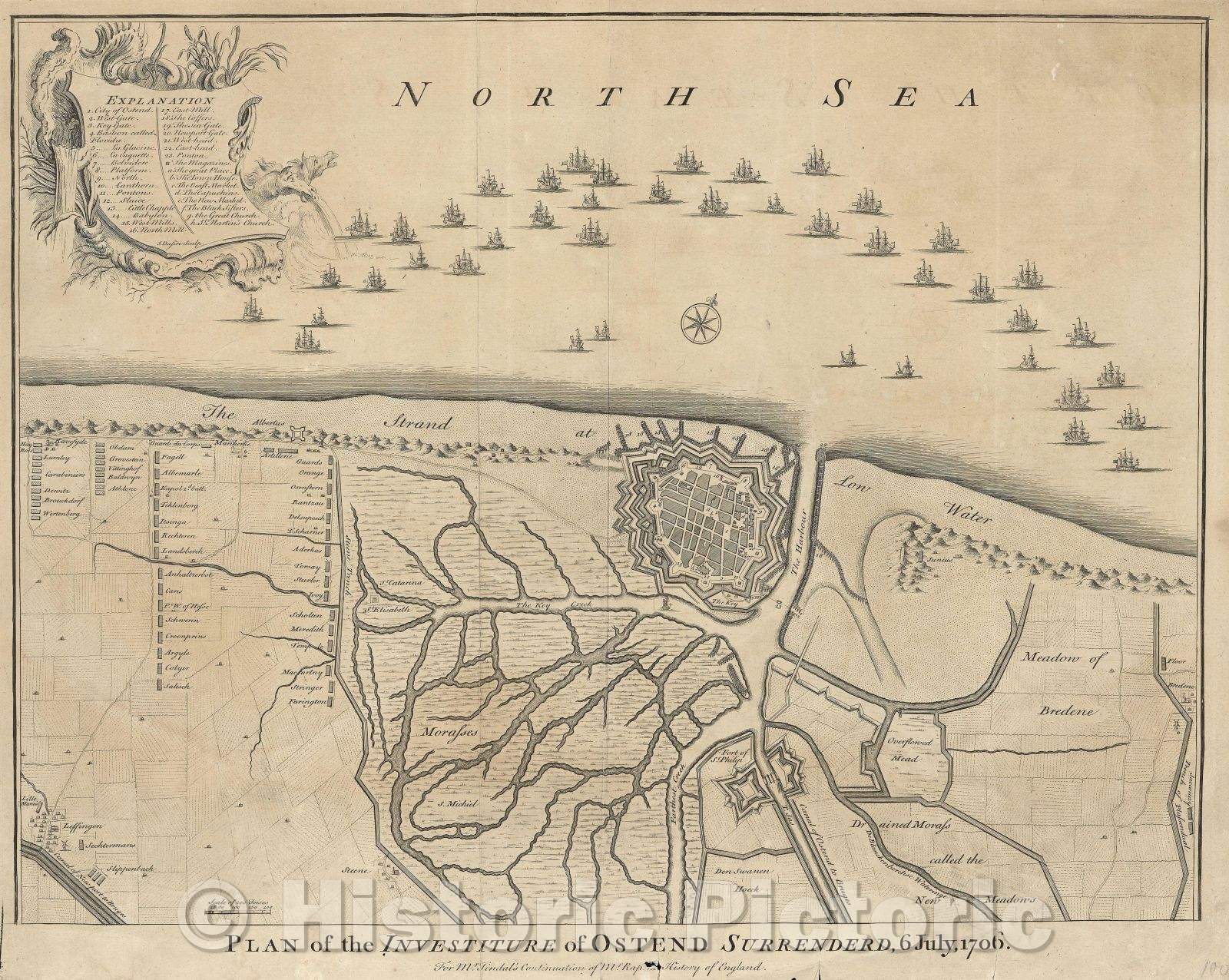 Historic Map : Plan of the Investiture of Ostend Surrenderd, 6 July, 1706 : for Mr. Tindal's continuation of Mr. Rapin's History of England, c. 1748 , Vintage Wall Art