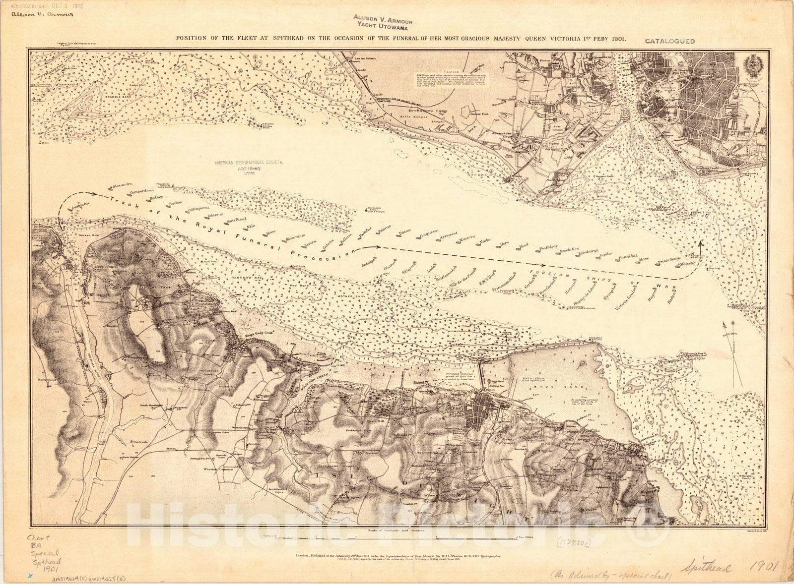 • Historic Map : Spithead Channel, England 1901 1, Position of the fleet at Spithead on the occasion of the funeral of Her Most Gracious Majesty Queen Victoria, 1st Feby. 1901