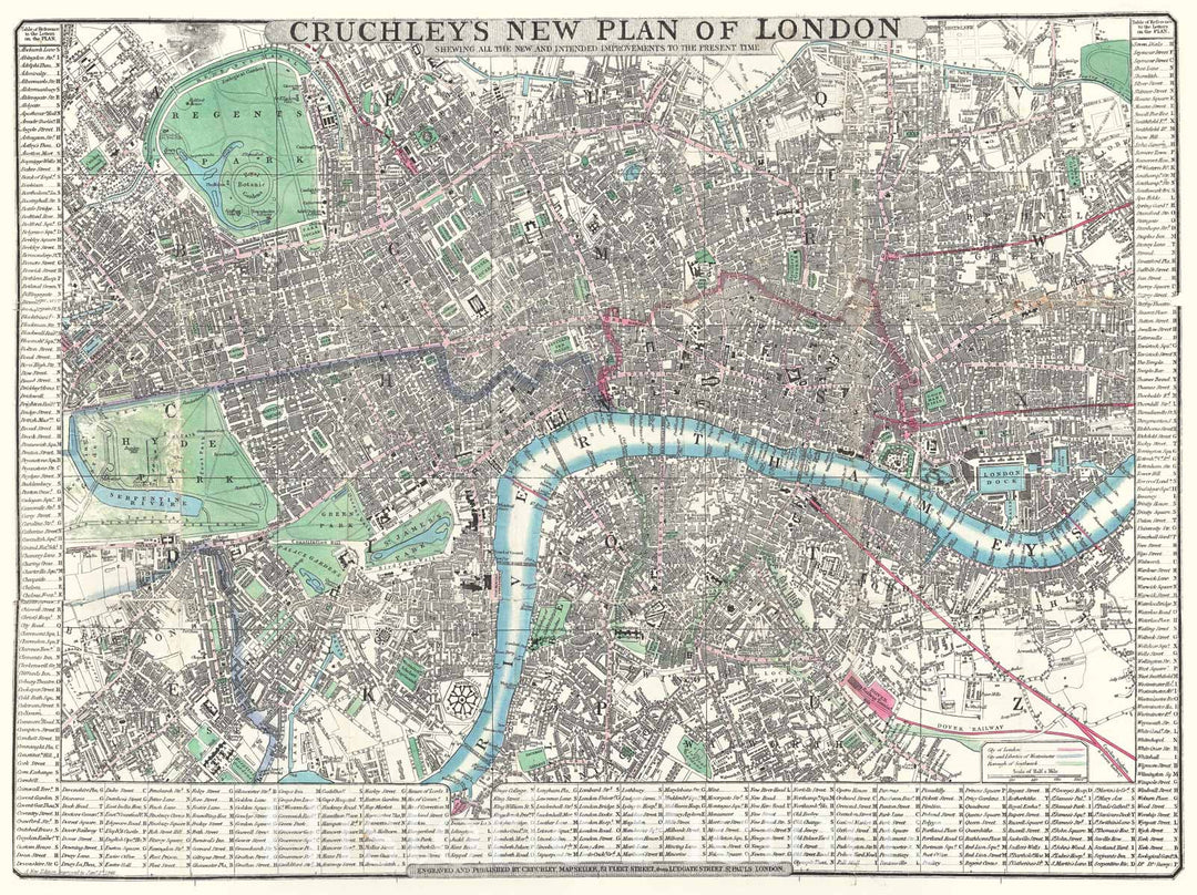 Historic Map : Cruchley Folding Wall Map of London, England, 1855, Vintage Wall Art