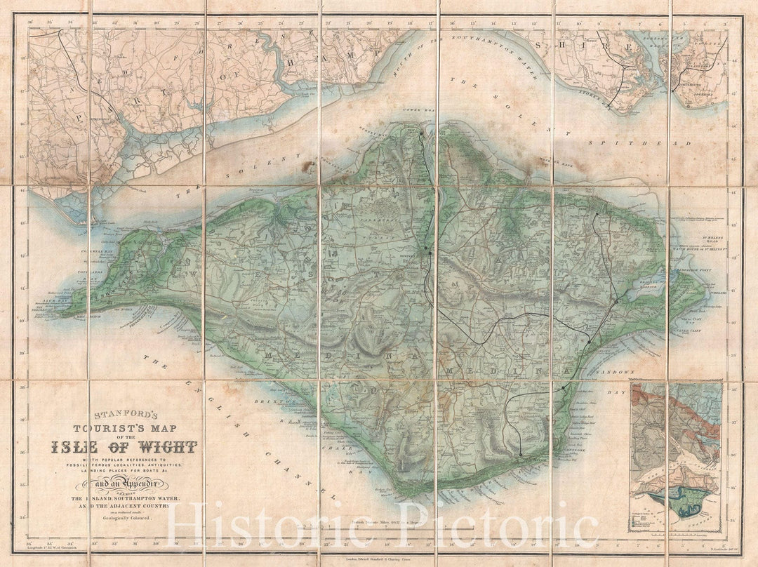 Historic Map : Stanford Pocket Map of The Isle of Wight, England, 1879, Vintage Wall Art