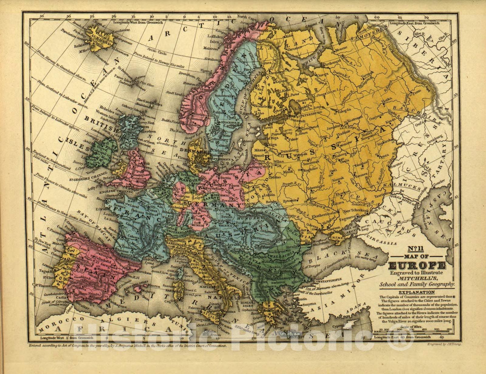 Historic 1839 Map - Mitchell's School Atlas. - Europe