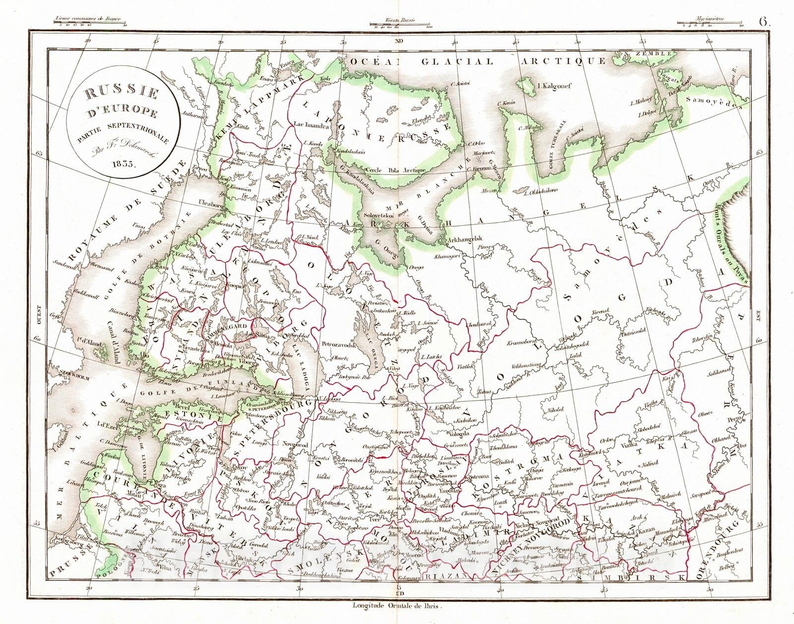 Vintage Map | 1834 Russie d'Europe parte Septentrionale | Delamarche, Félix