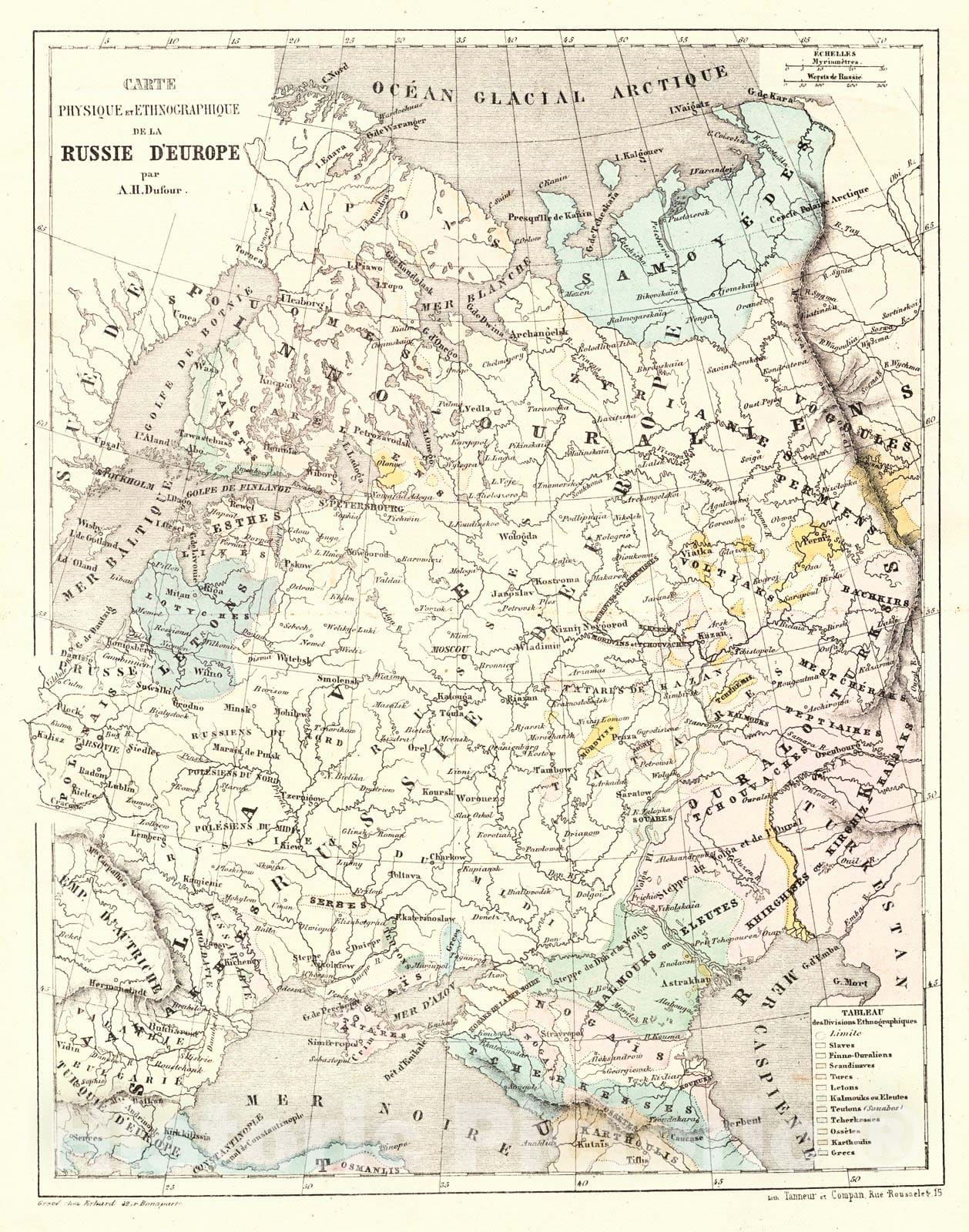 • .Historic Map : 1856 Carte Physique et Ethnographique de la Russie D'Europe : Vintage Wall Art