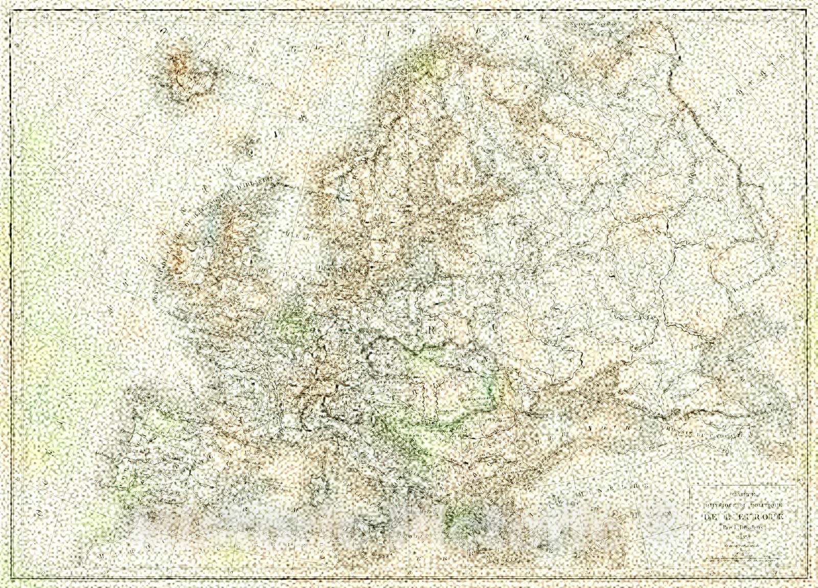 Historic Map : 1856 Carte Physique et Politique de L'Europe : Vintage Wall Art