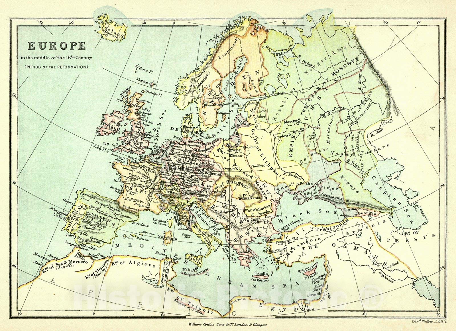 Historic Map : 1872 Europe in the middle of the 16th Century- Period of the Reformation : Vintage Wall Art