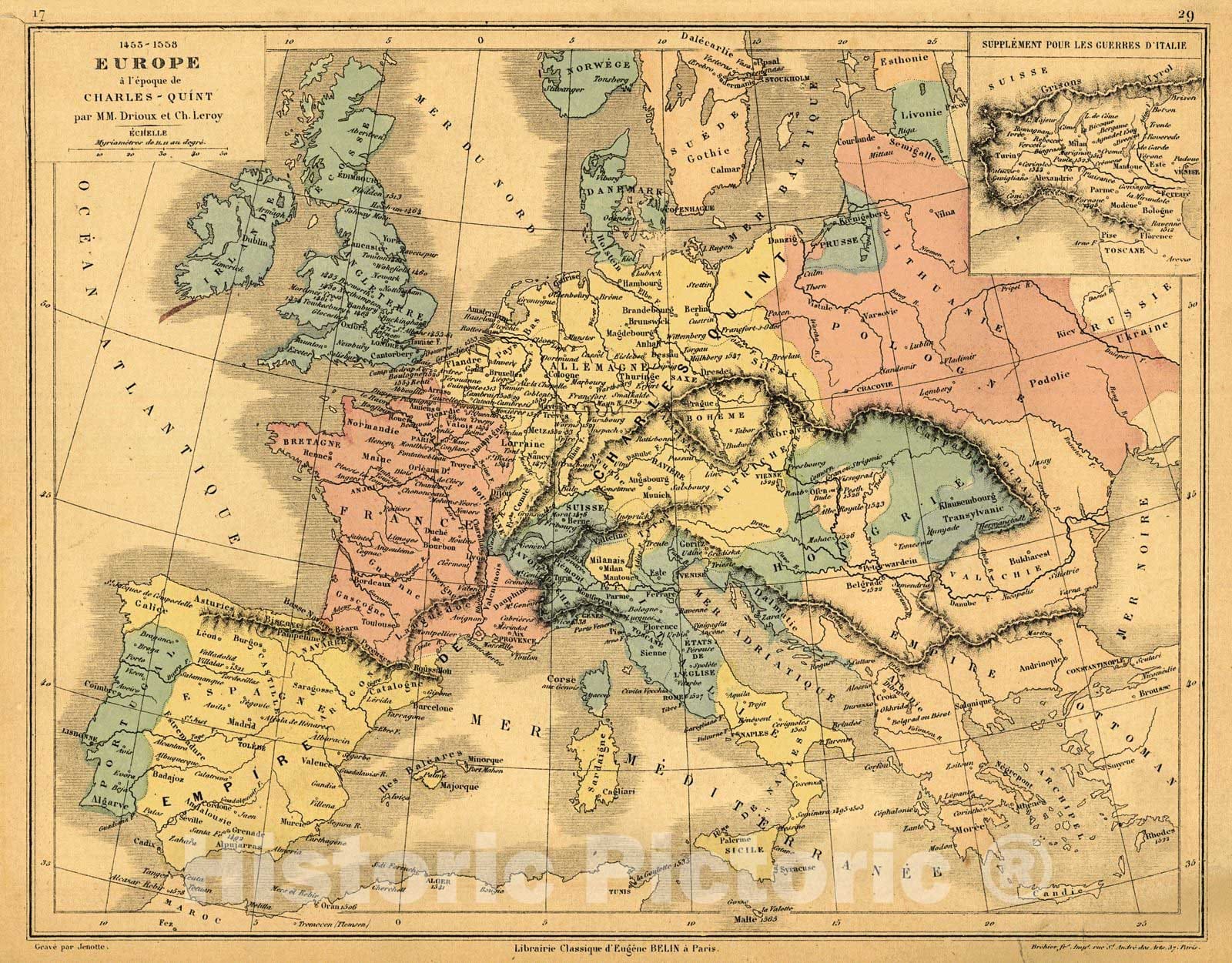 Historic Map : 1878 Europe á l' epoque de Charles-Quint : Vintage Wall Art