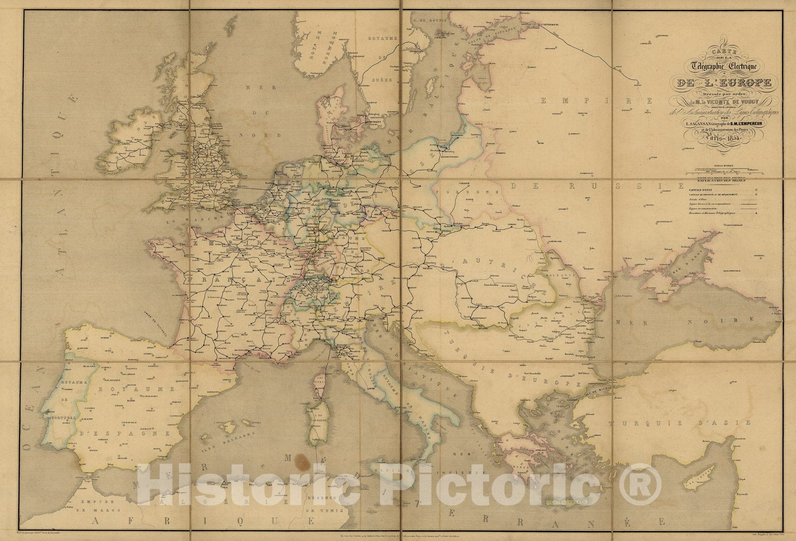 Historic Map - Carte de la télégraphie électrique de l'Europe Map