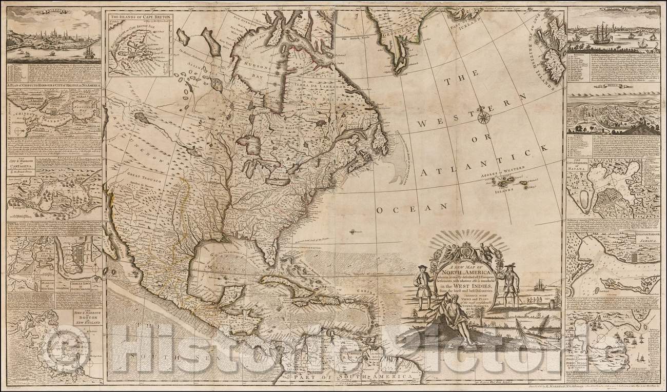 Historic Map - North America, wherein is exactly described all ye European Settlements, with whatever else is remarkable in the West Indies, from the La, 1776 - Vintage Wall Art