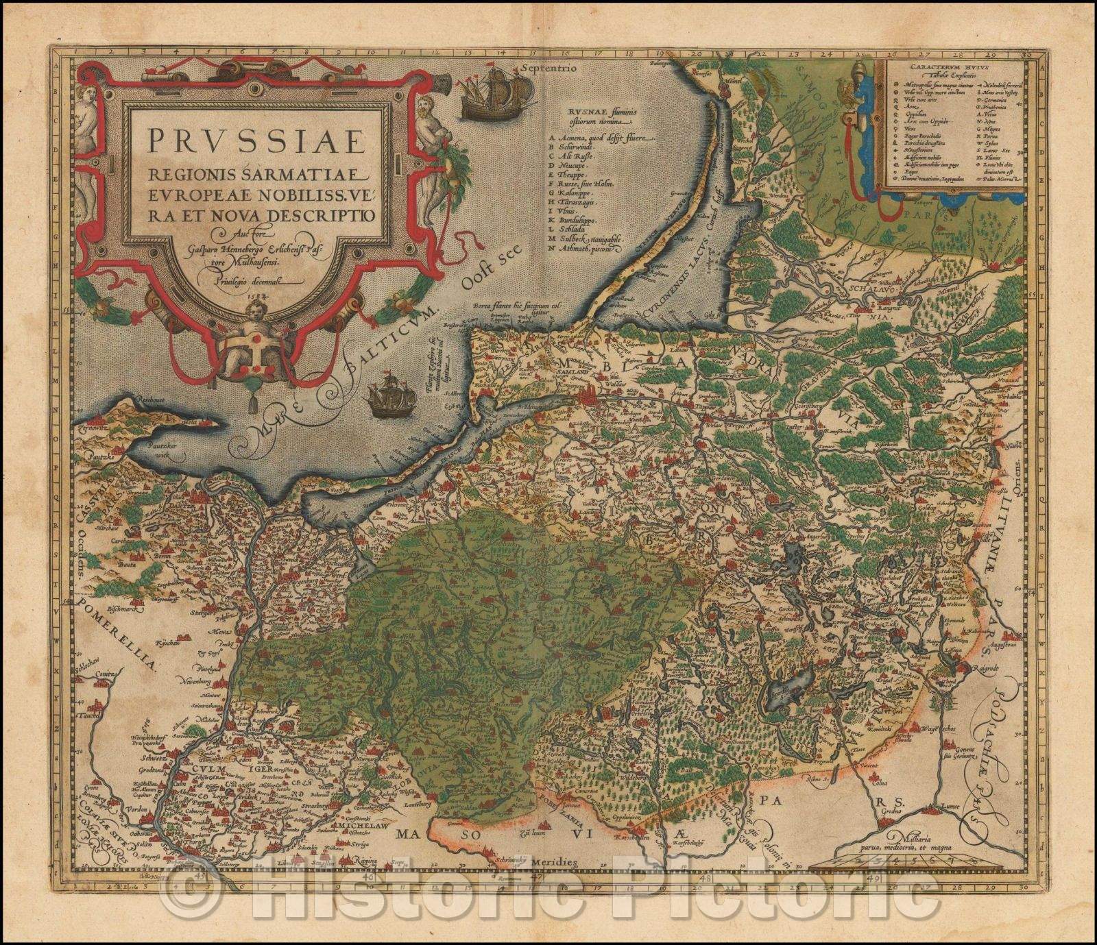 Historic Map - Prussiae Regionis Sarmatiae Europeae Nobiliss. Vera Et Nova Descriptio/Ortelius' first Map of Prussia, 1584, 1587, Abraham Ortelius - Vintage Wall Art