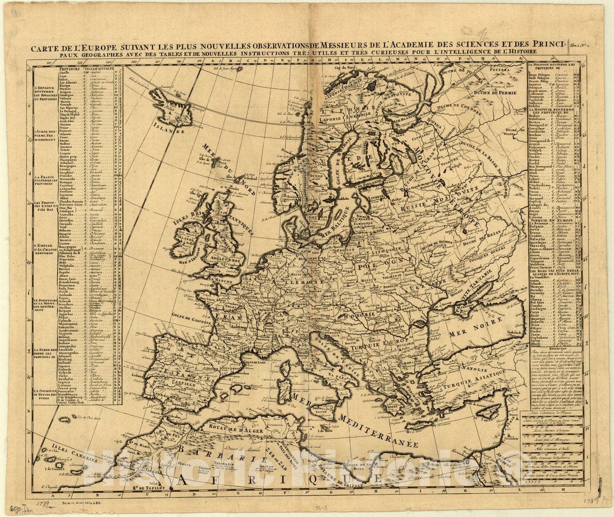 Map : Europe 1739, Carte de l'Europe suivant les plus nouvelles observations de Messieurs de l'Academie des sciences ..., Antique Vintage Reproduction