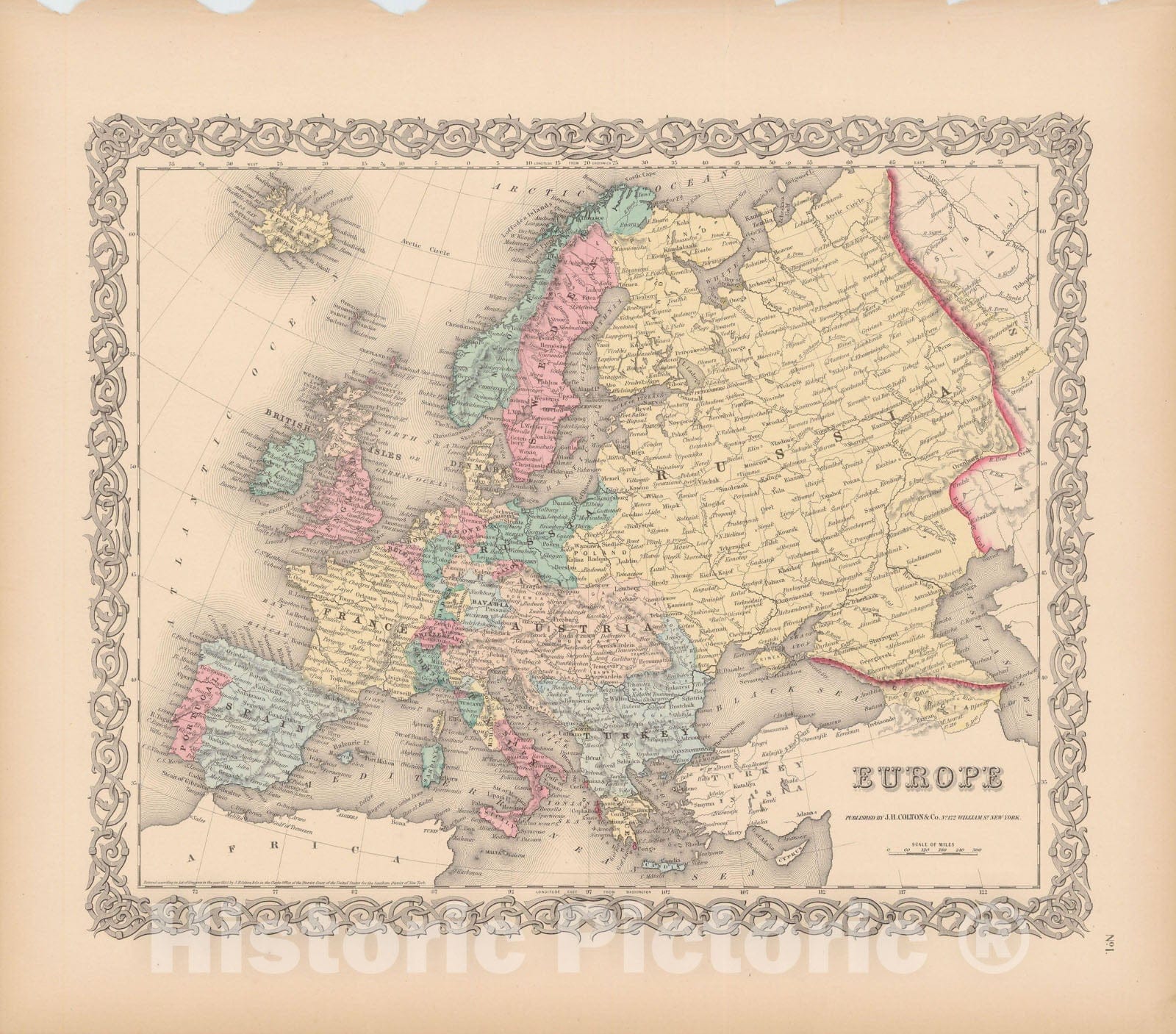 • .Historic Map : Europe 1856 , Colton's Atlas World , Vintage Wall Art