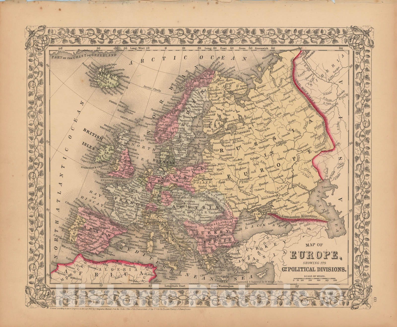 Historic Map : Europe 1867 , New General Atlas , Vintage Wall Art