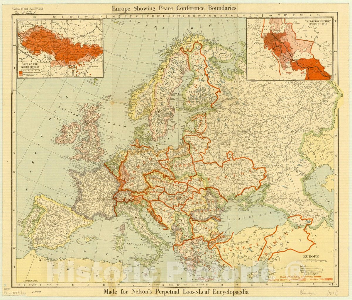 Map : Europe 1919, Europe showing peace conference boundaries , Antique Vintage Reproduction