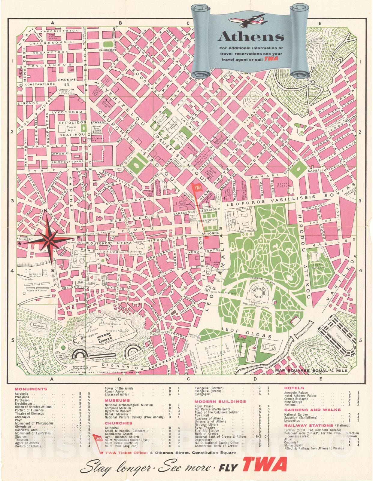 Historic Map : Europe, Athens 1951 , Vintage Wall Art