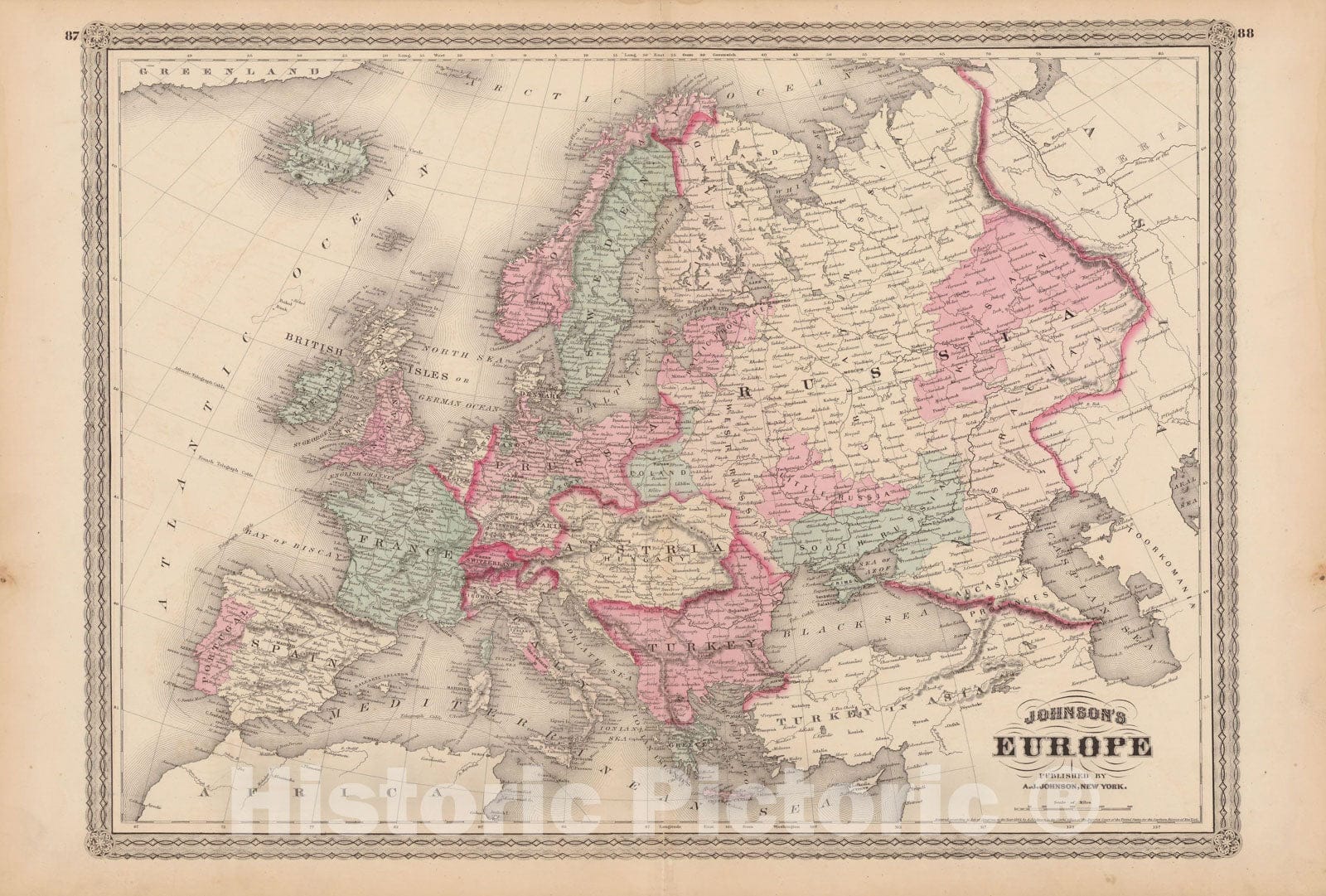 • Historic Map : Family Atlas World, Europe 1873 , Vintage Wall Art