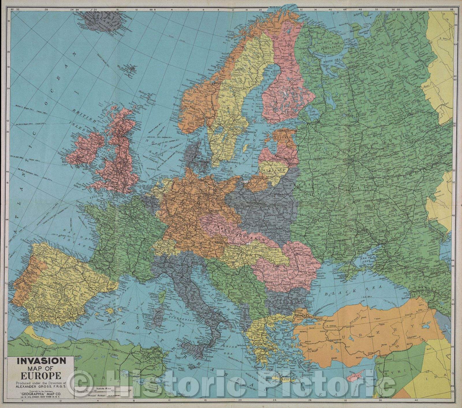 Historic Map : Invasion Map of Europe prepared under the direction of Alexander Gross, 1943 , Vintage Wall Art